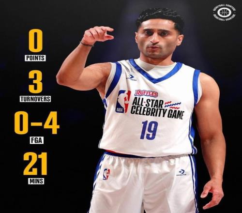 02月14報(bào)道 NBA全明星周末名人賽,名記Shams代表字母哥隊(duì)參賽,全場(chǎng)出戰(zhàn)21分鐘4投0中沒(méi)有得分,還出現(xiàn)3次失誤。2024年?duì)钤?、老鷹前鋒里薩謝因雷霆后衛(wèi)阿杰伊·米切爾傷缺而遞補(bǔ)進(jìn)入新秀賽名單,代表麥迪隊(duì)出戰(zhàn),但他全場(chǎng)上陣4分08秒5投0中,三分2中0,得分掛蛋,有1個(gè)籃板和1次助攻進(jìn)賬。