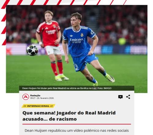 20歲的皇馬后衛(wèi)赫伊森,真的攤上大事了。前不久,赫伊森在INS上轉(zhuǎn)發(fā)一條種族歧視的動態(tài),引發(fā)軒然大波。近日,西班牙《馬卡報》、英國《每日郵報》、葡萄牙《球報》等全球媒體,紛紛報道赫伊森事件。