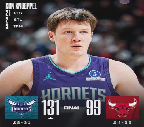 北京時間2月25日,NBA常規(guī)賽,黃蜂131-99大勝公牛。黃蜂4號秀克尼佩爾出戰(zhàn)22分31秒,投籃12中7,三分6中3,罰球4中4,砍下21分1板2助2斷,正負值+24全場第二高??四崤鍫?7次單場20+,在2025屆新秀中排第一。