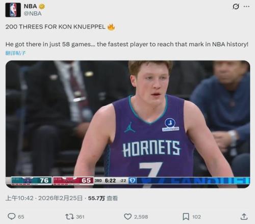 更重要的是,克尼佩爾打破了一項NBA歷史紀錄:僅用58場比賽,投進生涯200記三分,成為NBA最快達成的球員。此前紀錄是鄧肯-羅賓遜的69場,克尼佩爾把紀錄提升了一大截。此外,克尼佩爾本賽季命中201記三分,聯(lián)盟第一!