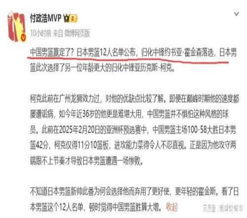 要知道,霍金森在上一個窗口期的表現(xiàn)可是非常全面,場均出戰(zhàn)34.9分鐘,場均砍下13.5分11板5助1助1.5蓋帽的全面數(shù)據(jù),在國際大賽比賽中,場均能夠交出這樣全面的數(shù)據(jù),確實屬實難能可貴。反倒是科克,一個接近36歲的老將,攻防兩端的表現(xiàn)不大問題,也完全跟不上日本隊的節(jié)奏。面對這樣一個大個子內線,中國隊即便沒有周琦、楊瀚森,憑借著余嘉豪、焦泊喬和胡金秋,大概率也能輕松拿捏對手。