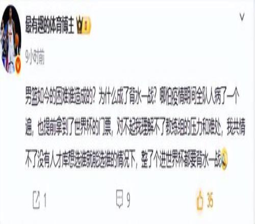 世預(yù)賽第一窗口期兩敗韓國(guó),就充分證明郭士強(qiáng)的選人用人大大的錯(cuò)誤。在國(guó)家隊(duì)的用人問(wèn)題上,郭士強(qiáng)真不如杜鋒。媒體人最有趣的體育博主怒批道,“男籃如今的困難誰(shuí)造成的?為什么成了背水一戰(zhàn)?哪怕疫情期間全隊(duì)人病了一個(gè)遍,也提前拿到了世界杯的門票,對(duì)不起我理解不了教練組的壓力和難處,我共情不了沒(méi)有人才庫(kù)想選誰(shuí)就能選誰(shuí)的情況下,整了個(gè)進(jìn)世界杯都要背水一戰(zhàn)?!惫繌?qiáng)啊郭士強(qiáng),你沒(méi)有帶上龐崢麟,而是帶著趙繼偉高詩(shī)巖這些后衛(wèi)就是最大的錯(cuò)誤,今晚如果再輸,你真的該自動(dòng)辭職了。你們說(shuō)呢?
