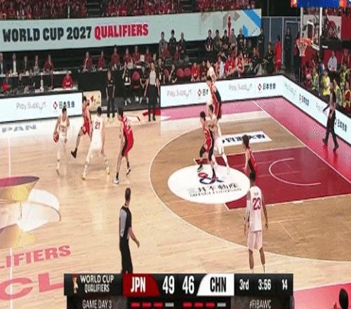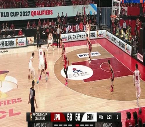 高詩巖借掩護(hù)三分追平比分!中國男籃49-49日本