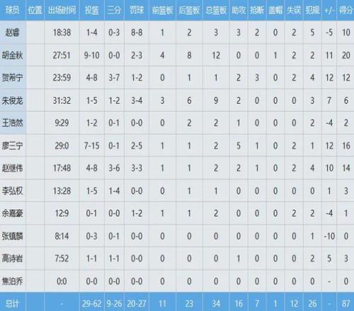 全場比賽,胡金秋首發(fā)出戰(zhàn)約28分鐘,投籃10中9,以幾乎100%命中率砍下20分12板(4前場板),完爆日本男籃的歸化內(nèi)線科克,帶領(lǐng)中國男籃87-80贏下了至關(guān)重要的比賽。