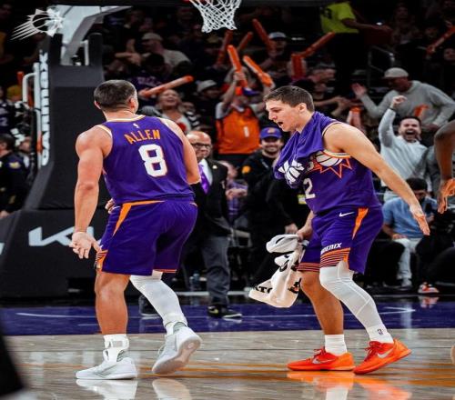 弗萊明外線命中,里夫斯與阿倫在低位對(duì)轟,東契奇助攻詹姆斯暴扣。東契奇外線打鐵,隨后被搶斷,弗萊明、布耶相繼沖擊籃下得分,伊戈達(dá)羅封蓋艾頓,阿倫搶斷里夫斯,隨后連中2記遠(yuǎn)投,菲尼克斯回敬10比0的攻勢(shì),雷迪克請(qǐng)求暫停。東契奇2罰全中,布耶罰進(jìn)1球,肯納德失誤。阿倫、科菲、弗萊明相繼外線命中,東契奇轟進(jìn)3分球,隨后2罰全中為湖人止血。太陽挑戰(zhàn)判罰成功,阿倫2罰全中,詹姆斯助攻斯馬特外線取分。第3節(jié)打完,兩隊(duì)?wèi)?zhàn)成80平。阿倫單節(jié)16分,東契奇14分,詹姆斯8分。