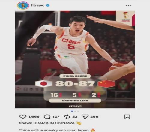 遺憾的是,國際籃聯(lián)賽后在官網(wǎng)點評中國男籃的勝利時,用“中國男籃從日本偷走一場勝利”來形容!