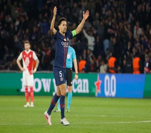 2月25日,巴黎圣日耳曼隊(duì)球員馬爾基尼奧斯在進(jìn)球后慶祝。新華社