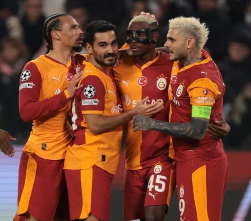 2月25日,加拉塔薩雷隊(duì)球員奧斯梅恩(右二)與隊(duì)友慶祝進(jìn)球。新華社
