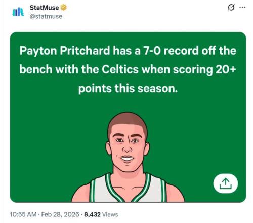 作為球隊替補席最重要的火力點,他已經(jīng)成為球隊贏球風向標,本場比賽結束后,本賽季當普理查德至少拿下20分時,凱爾特人7勝0負保持不敗金身。