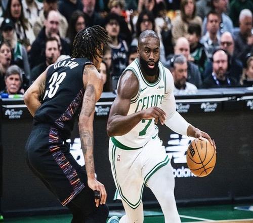 本場比賽面對弱旅籃網(wǎng),布朗也是小試牛刀,在進攻端打出高效又無解的一場比賽。
