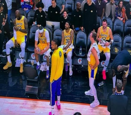 但是還有兩個(gè)細(xì)節(jié)鏡頭,一個(gè)是當(dāng)時(shí)坐在板凳席上的時(shí)候,第四節(jié)湖人全隊(duì)死氣沉沉,而且詹姆斯和東契奇故意坐在了板凳的兩邊,中間的所有隊(duì)友保持沉默,一句話不敢說。他們不知道說話會(huì)得罪哪個(gè)大佬,偏向詹皇盧卡肯定不開心,你偏向東契奇,詹姆斯可是很記仇的。他們手足無措,顯得非常的無語,中間這三個(gè)人一句話都不敢說,一個(gè)鏡頭勝過千言萬語了。