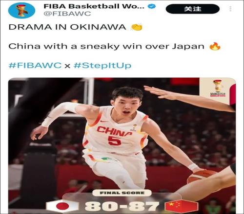 目前FIBA官方已經(jīng)將該帖文案修改為:“沖繩神劇本!中國男籃在下半場翻盤,擊敗日本隊(duì)。”
