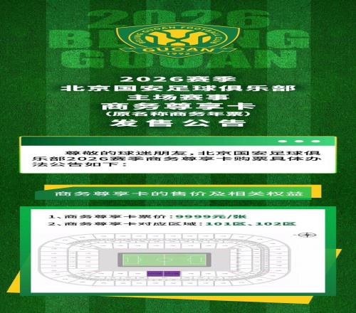 2026賽季北京國安足球俱樂部主場賽事商務(wù)尊享卡原名稱商務(wù)年票發(fā)售公告