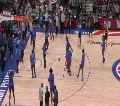 活塞詹金斯運(yùn)球還沒過半場,泰森故意犯規(guī),詹金斯順勢3分出手,裁判給了活塞三次罰球。