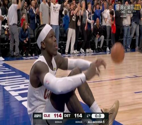 第四節(jié)最后4秒鐘,騎士114-111領(lǐng)先活塞3分