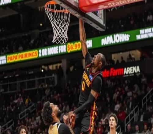 雖然說這是一場(chǎng)多達(dá)21分的大勝,但對(duì)于庫明加而言,此役絕非傳統(tǒng)意義上的順風(fēng)球。本場(chǎng)比賽,老鷹絕對(duì)核心杰倫·約翰遜因?yàn)轶y部傷病只打了不到6分鐘便退出比賽,老鷹隊(duì)鋒線失去了最重要的破局者。這是球隊(duì)的臨場(chǎng)危機(jī),卻也是庫明加的最好機(jī)會(huì)。走上球場(chǎng),快攻終結(jié)、近筐強(qiáng)打以及三分球投射,庫明加展現(xiàn)出了自己全面的進(jìn)攻技巧。在科爾眼中無法與勇士體系適配,無限遭到棄用的他,在亞特蘭大的夜空中振翅翱翔。