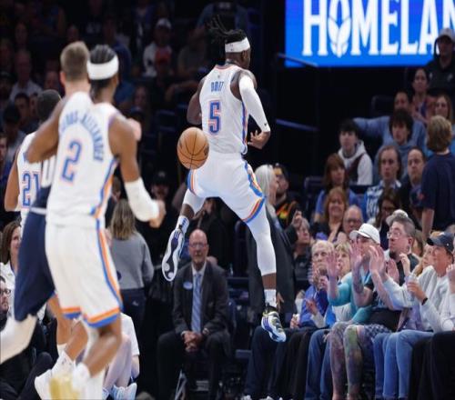 就在不久之前結(jié)束的一場西部焦點(diǎn)大戰(zhàn)中,衛(wèi)冕冠軍雷霆隊(duì)頂住了壓力,最終以127:121的比分險勝了掘金隊(duì),繼續(xù)鞏固著他們西部第一的位置。