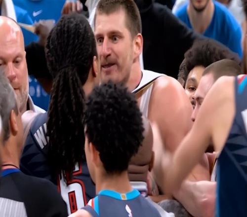 不過,這場比賽中,卻爆發(fā)了非常嚴(yán)重的沖突,比賽到了第四節(jié),雷霆隊(duì)的呂岡茨·多爾特突然絆倒了掘金隊(duì)的尼古拉·約基奇,雙方瞬間迎來了對峙,場面一度非常緊張,險些爆發(fā)了大規(guī)模的沖突。最終裁判直接吹罰了多爾特一個二級犯規(guī),并且驅(qū)逐出場,并且給到了約基奇以及前來出頭的杰林·威廉姆斯各自一個技術(shù)犯規(guī),方才息事寧人。
