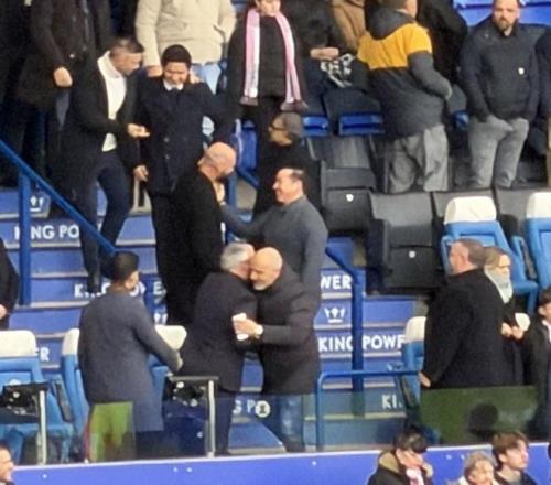 造訪老東家,馬雷斯卡現(xiàn)身萊斯特城對陣諾維奇的比賽現(xiàn)場