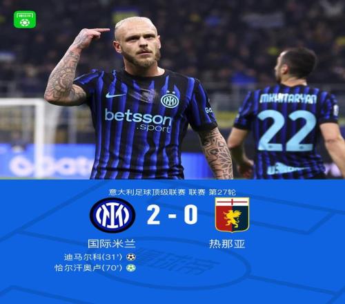 北京時間3月1日意大利足球頂級聯(lián)賽第27輪,國際米蘭主場對陣熱那亞。上半場,姆希塔良助攻,迪馬爾科凌空破門。下半場,路易斯-恩里克造點,恰爾汗奧盧主罰命中。全場比賽結(jié)束,國米2-0戰(zhàn)勝熱那亞。