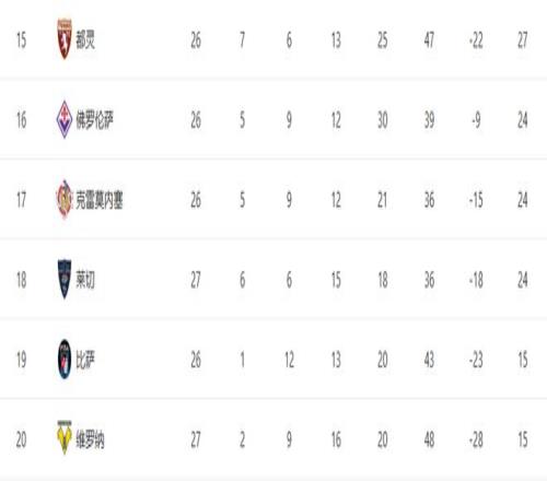 隨著黑馬31逆轉(zhuǎn)+衛(wèi)冕冠軍21!意甲最新積分榜:25名差6分