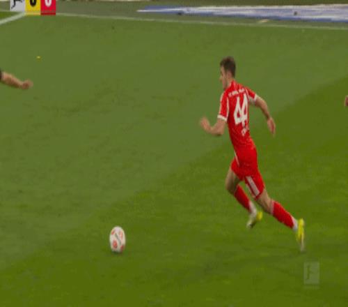第53分鐘,基米希挑傳,格納布里助攻凱恩破門,拜仁1-1!