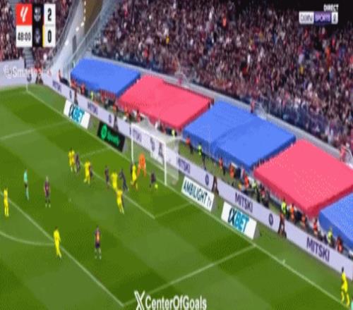 第49分鐘,尼古拉-佩佩角球傳中,巴薩后防線一片混亂,帕普-蓋伊門前抽射建功,比利亞雷亞爾扳回一城,1-2!