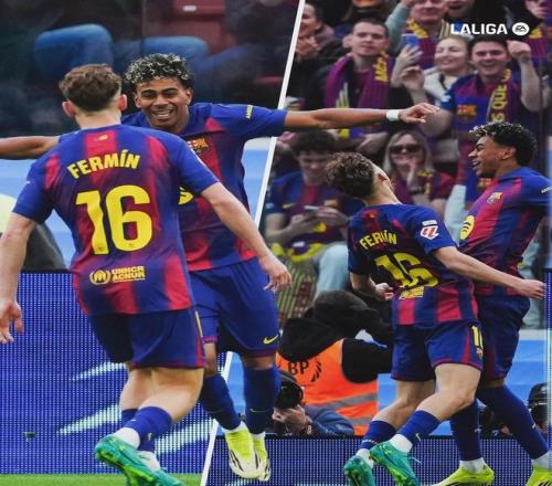 此役主場對陣比利亞雷亞爾,首發(fā)出戰(zhàn)的亞馬爾在比賽第28分鐘、第37分鐘和第69分鐘各入一球,上演帽子戲法。