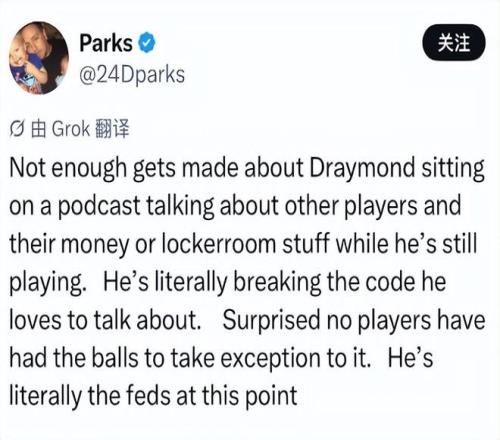 這場比賽后勇士媒體開噴追夢:他一邊打球一邊搞播客,其他球員在更衣室的事兒被他各種拿來調(diào)侃,他一直在破壞聯(lián)盟的和睦,我很驚訝為什么沒有球員站出來怒斥他,他將兼職當主業(yè)干。