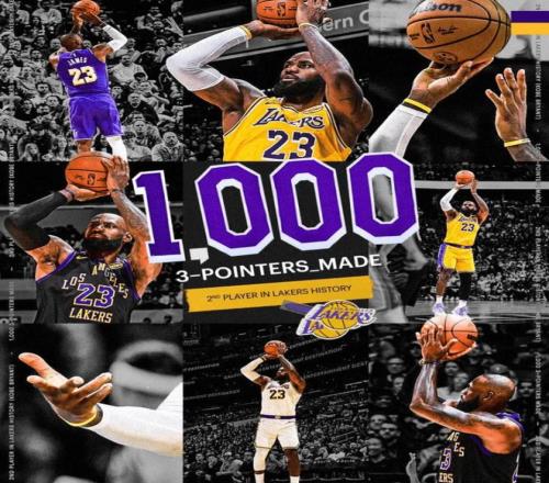 • 1. 詹姆斯成為隊史上第二位三分球命中數(shù)達到1000個的球員,比肩科比;