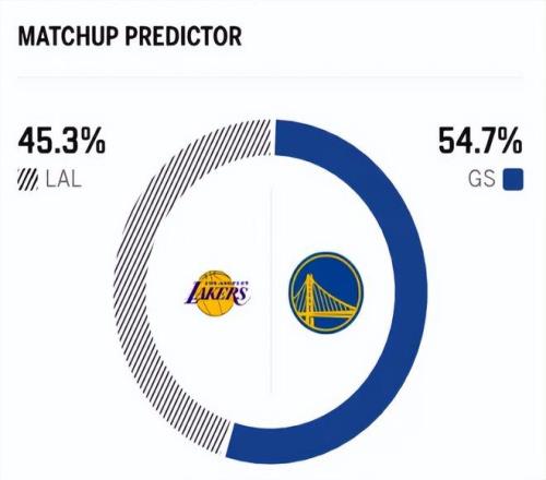 賽前,美媒ESPN對本場比賽進行了勝率預測,湖人隊勝率僅有45.3%,略占劣勢,勇士勝率則意外高達54.7% 。