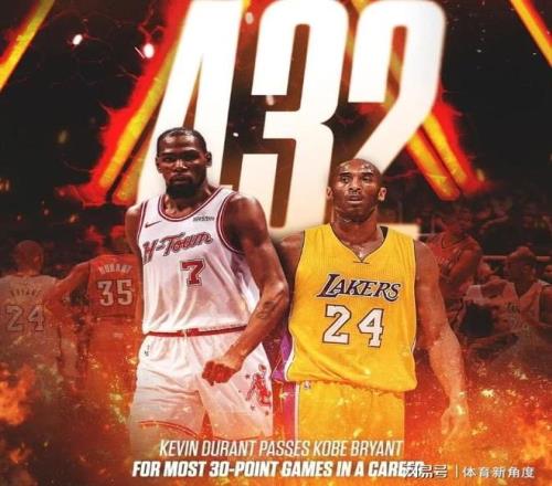 今日,杜蘭特鏖戰(zhàn)37分鐘,20次出手命中12球,其中三分球8投2中,罰球更是無一失手,6罰全中,最終斬獲32分、8次助攻、5個籃板以及2次封蓋。遺憾的是,杜蘭特此役雖個人數(shù)據(jù)耀眼,球隊卻未能取勝,真可謂“里程悲”。此役過后,杜蘭特職業(yè)生涯中得分30+的場次累積至432場,成功超越科比,獨(dú)占NBA歷史30+得分榜第五席位。近六場比賽,杜蘭特場均貢獻(xiàn)29.3分、6個籃板和5.8次助攻,投籃命中率高達(dá)54.2%,三分命中率也有37.2%,狀態(tài)正佳。