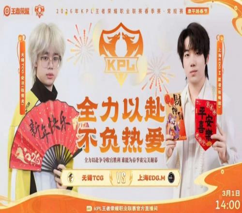 體育播報3月1日宣 2026KPL春季賽本場比賽是由上海EDG.M對陣到無錫TCG!