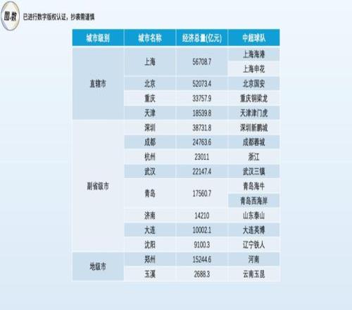 中國(guó)有十五個(gè)副省級(jí)市,其中八個(gè)市擁有9支中超球隊(duì),再加上四個(gè)直轄市的5支中超球隊(duì),一共占有中超16個(gè)席位的?,頂級(jí)聯(lián)賽資源明顯聚集于高行政層級(jí)的城市,反映出城市等級(jí)與職業(yè)足球發(fā)展的強(qiáng)關(guān)聯(lián)性。