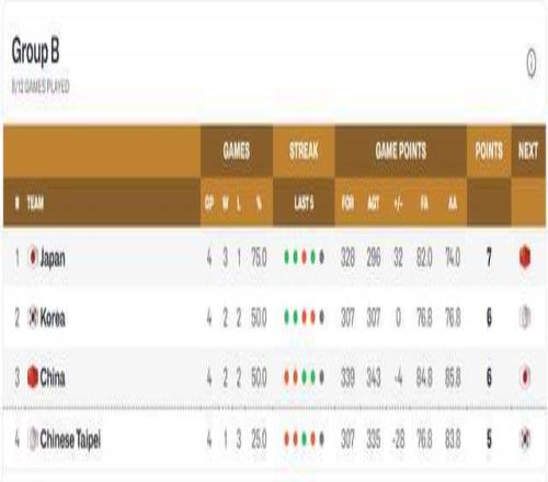 第二窗口期2場比賽打完,目前B組積分榜有了新變化。日本隊3勝1負穩(wěn)居第一,韓國隊2勝2負積6分,中國男籃同樣2勝2負,卻因交鋒戰(zhàn)績0-2落后韓國,只能排在第3。