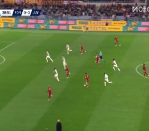 第39分鐘,尤文門球開出,雙方連續(xù)的拼搶,皮西利得球分給左路跟進(jìn)的韋斯利,后者橫帶一步內(nèi)切兜射遠(yuǎn)角,佩林撲到一下但沒能阻止皮球入網(wǎng)!羅馬1-0領(lǐng)先↓