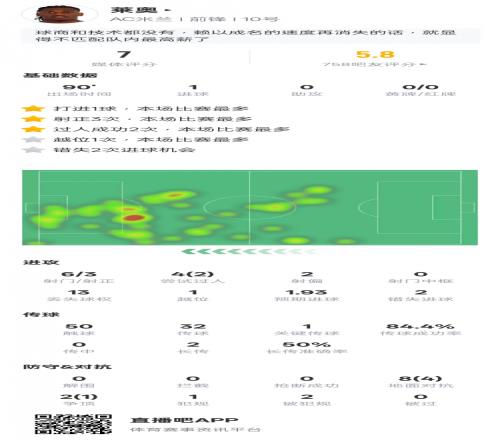 萊奧本場比賽具體數(shù)據(jù)如下: