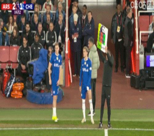 第59分鐘,帕爾默拉倒薩卡,被黃牌警告