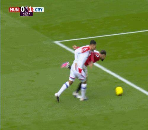 第57分鐘,B費(fèi)點(diǎn)球騙過(guò)水晶宮門(mén)將亨德森,將比分扳為1比1平。在此之前,庫(kù)尼亞接B費(fèi)塞球,巧妙轉(zhuǎn)身形成單刀之勢(shì)。拉克魯瓦在禁區(qū)線上拉人,雖很快松手示意自己無(wú)辜,但在VAR的介入下,最終還是被當(dāng)值主裁認(rèn)定為“犯規(guī)阻攔了對(duì)方的明顯進(jìn)球機(jī)會(huì)”,被判點(diǎn)球加紅牌。