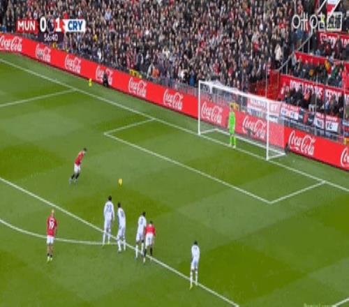 第40分鐘,日本國(guó)腳鐮田大地禁區(qū)前將姆伯莫放倒,曼聯(lián)獲得一個(gè)絕佳的任意球機(jī)會(huì),B費(fèi)直接射門(mén)極具威脅,皮球幾乎擦著橫梁飛出底線。