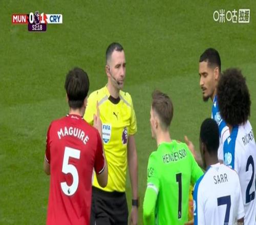 第52分鐘,B費(fèi)前場(chǎng)左側(cè)送出直塞,庫(kù)尼亞轉(zhuǎn)身抹入禁區(qū),拉克魯瓦伸手將庫(kù)尼亞拉倒,主裁判克里斯-卡瓦納經(jīng)過(guò)VAR介入后,親自走到場(chǎng)邊觀看錄像,并判罰紅點(diǎn)套餐,水晶宮進(jìn)球功臣拉克魯瓦被罰下。B費(fèi)穩(wěn)穩(wěn)將點(diǎn)球罰進(jìn),曼聯(lián)將比分扳平,并且多打一人。