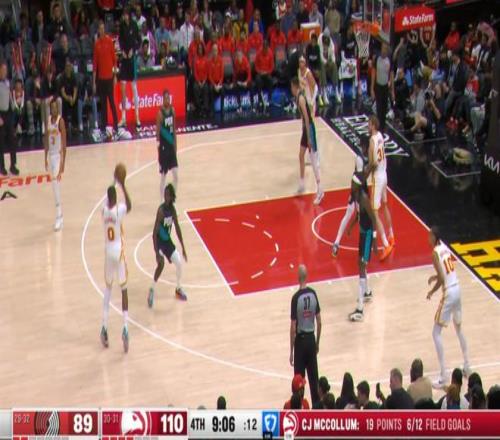——第三球利用開拓者的防守失誤直接籃下強起,這一次小楊成了背景板