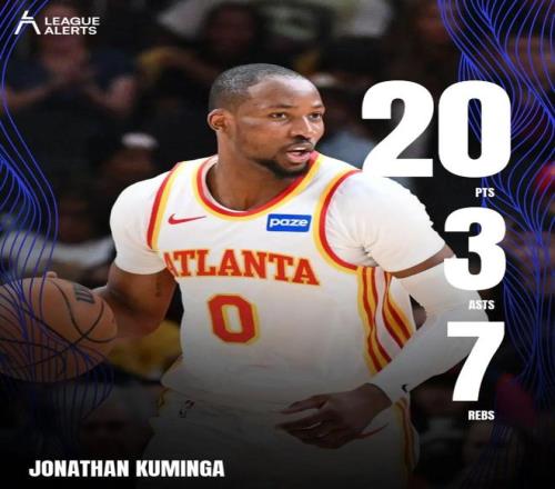這場比賽,老鷹新援庫明加再次打出了優(yōu)秀表現(xiàn):替補出戰(zhàn)25分鐘,投籃10中7,三分2中1,罰球7中5,拿下20分7籃板3助攻2搶斷。
