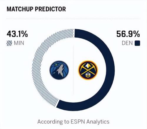 整體來看,掘金的整體實(shí)力與陣容穩(wěn)定性更勝一籌,內(nèi)外線雙核發(fā)揮成熟可靠,戈貝爾難以有效限制約基奇的組織與內(nèi)線進(jìn)攻,角色球員的發(fā)揮也更具持續(xù)性。賽前,ESPN預(yù)測本場比賽結(jié)果,掘金勝率56.9%,森林狼勝率43.1%,顯然他們更看好掘金主場擊敗森林狼。