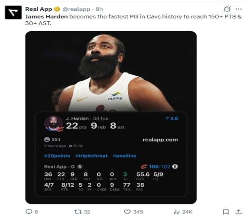 2.哈登成為騎士隊(duì)史最年長(zhǎng)連續(xù)三場(chǎng)比賽20+的球員;