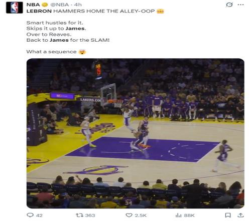 這場比賽41歲的勒布朗還完成了一個超級霸氣的空中接力暴扣,NBA官方寫道:勒布朗空接暴扣,霸氣側(cè)漏!戴上皇冠。