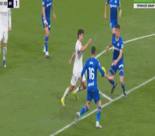 第61分鐘,居萊爾禁區(qū)前沿做球,貢薩洛-加西亞轉(zhuǎn)身凌空抽射被封堵,隨后痛苦倒地,裁判沒有任何表示。