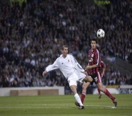 齊達內(nèi):這張照片拍的是2002年5月15日,在格拉斯哥舉行的歐冠決賽對陣?yán)瘴謳焐瓡r我打進的那粒進球(比分2-1)。那一刻仿佛時間靜止,是一種懸停在空中的巔峰瞬間。正是這個進球,讓我的榮譽版圖得以完整。