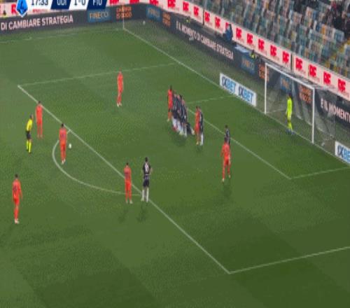 第90+4分鐘,布克薩右路突破至禁區(qū)兜射遠(yuǎn)角破門,烏迪內(nèi)斯3-0佛羅倫薩