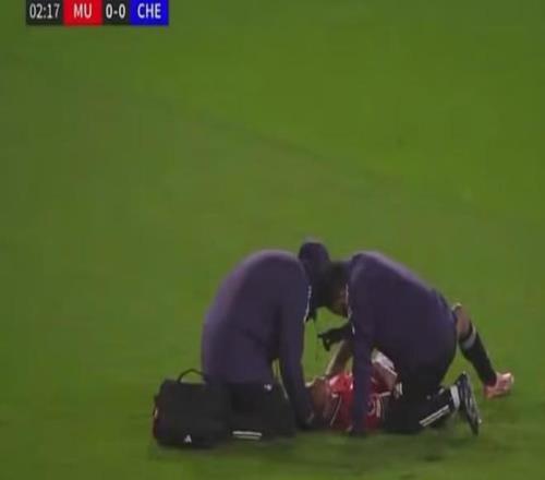 曼聯(lián)球員奇多-奧比經(jīng)過(guò)長(zhǎng)時(shí)間檢查后最終被替換下場(chǎng)。